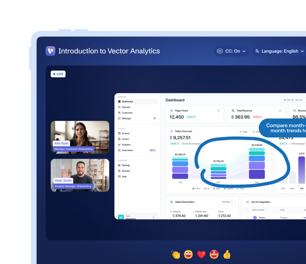 Keep energy high with Q&A, polls, and walkthroughs that shorten the path from sign-in to success.