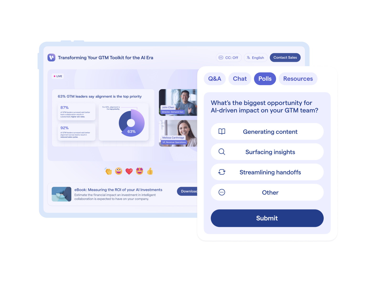 Turn attention into pipeline with webinars, events, and on-demand experiences. Capture data at every touchpoint, score intent, and trigger personalized follow-ups.