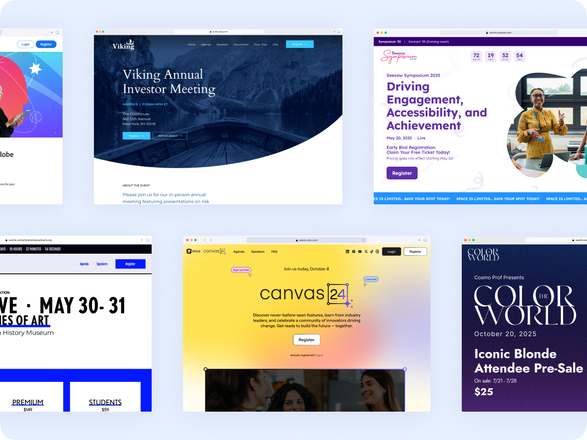 Create beautiful event microsites, capture registrations, check people in, and print badges on-demand, all on the same platform.
