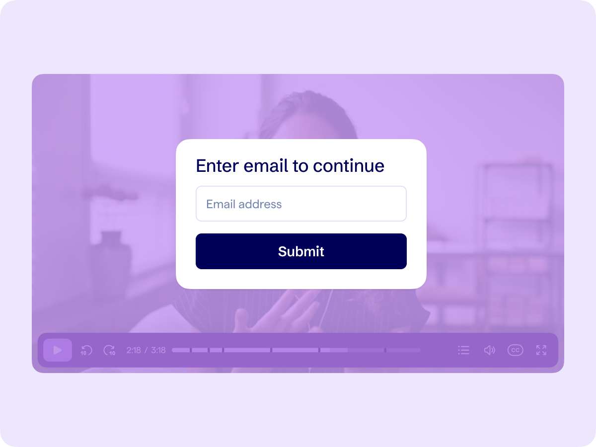 Collect leads and drive action right in the player with inline forms, polls, and CTAs. No redirects, no drop-off.