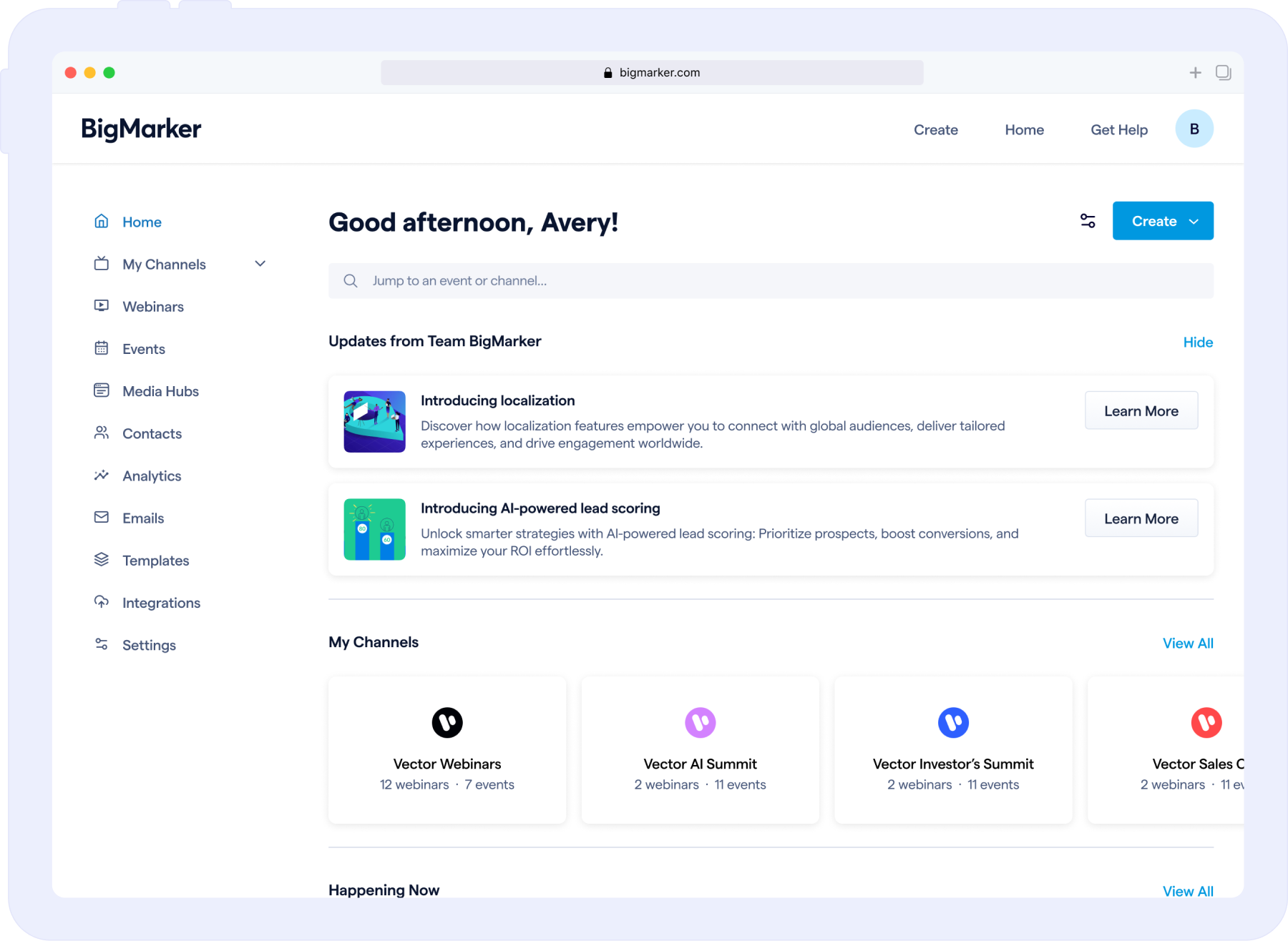 Our updated homepage dashboard and channel experience are designed to help you stay organized and maximize your impact. Dive in today to explore a more intuitive way to manage your webinars, events, and channels.