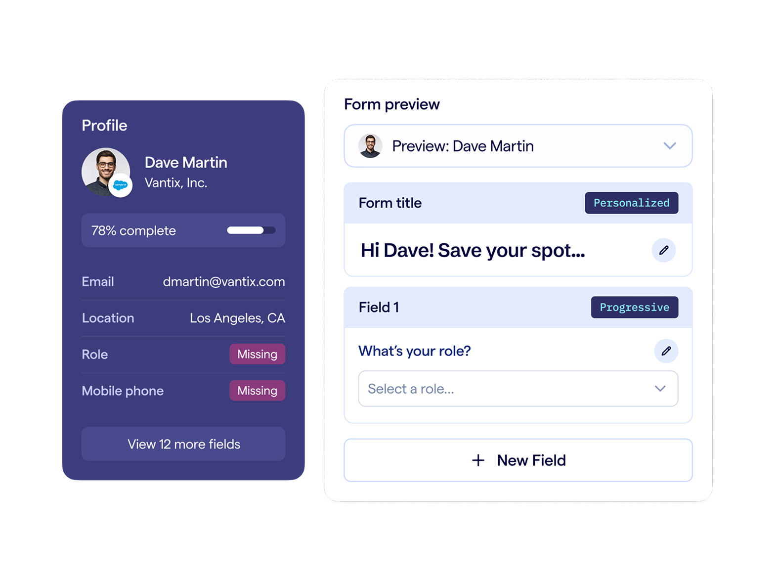Shorten forms to maximize conversion rates and capture only the new data you need to enrich CRM profiles.